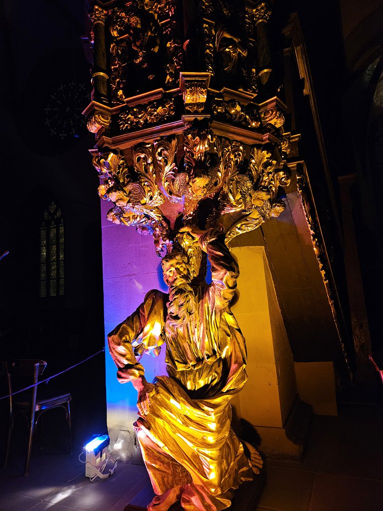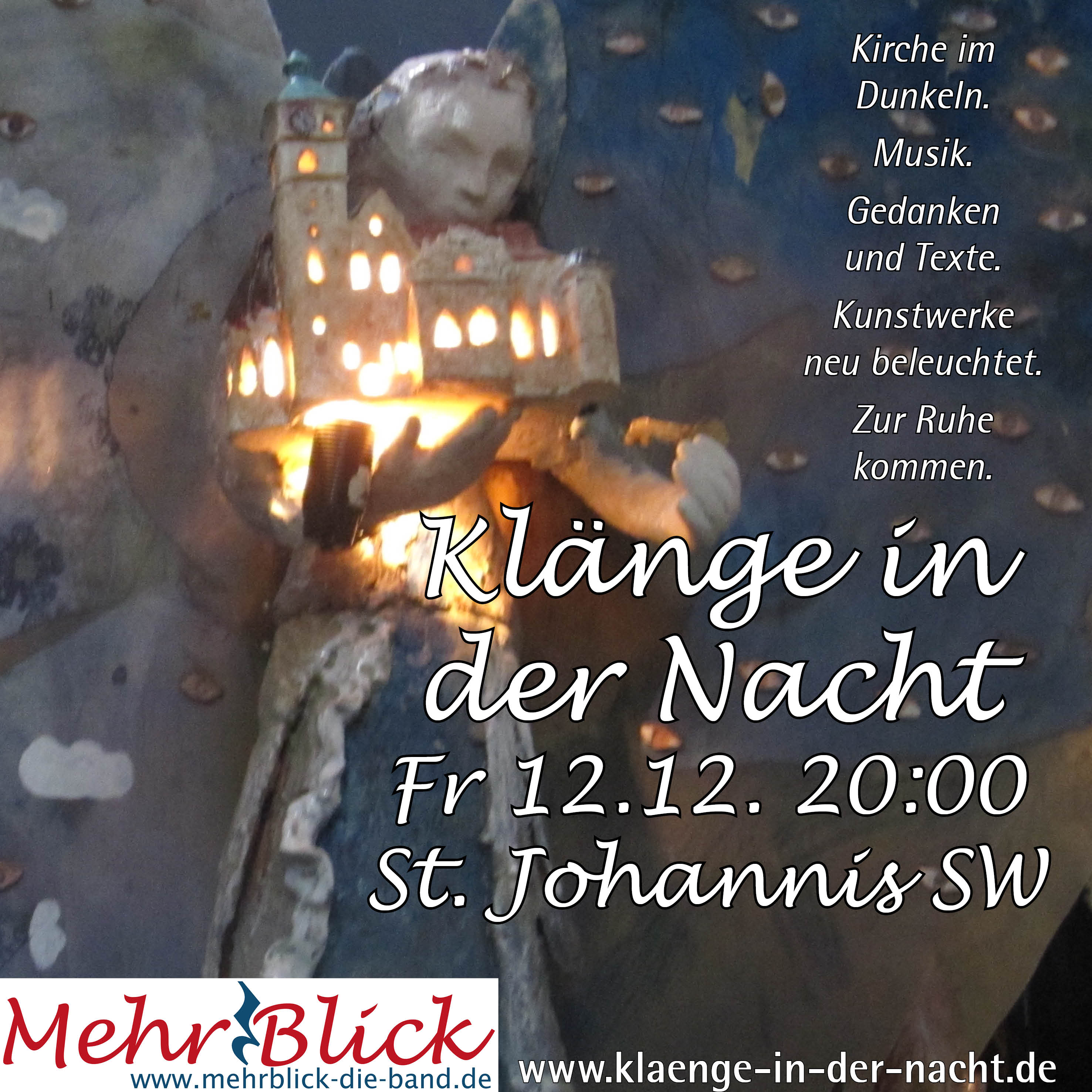 Mitten in der Nacht erwachen in der dunklen Johanniskirche einzelne Figuren zum Leben. Ausschnitte aus Kunstwerken der Johanniskirche werden beleuchtet. Ungewohnte Perspektiven auf die Kunst und auf das eigene Leben entstehen. Literarische Texte verweben sich mit leiser Musik der Band MehrBlick in kleiner Besetzung (Sandy und Klaus Fiedler, Heiko Kuschel)